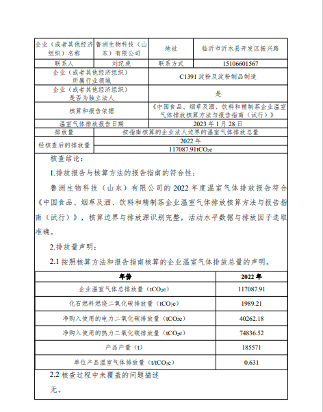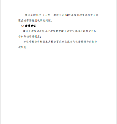魯洲生物科技(山東)有限公司2022年度溫室氣體排放核查報告
